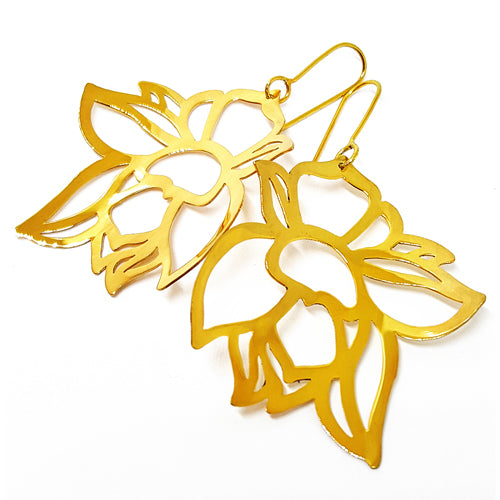 24ct gold plated over all surface with sterling silver hooks and brass plate. Handmade in Cape Town.